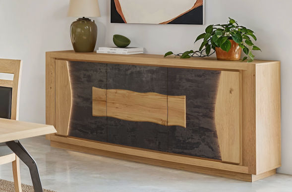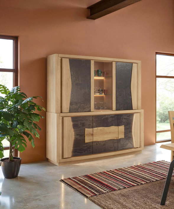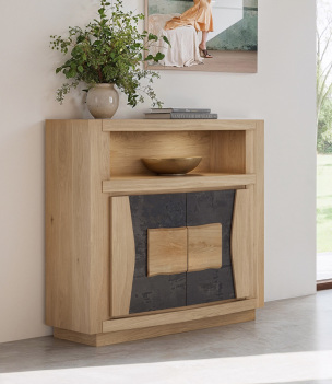 Bahut en chêne et céramique 3 portes, 1 tiroir intérieur en :