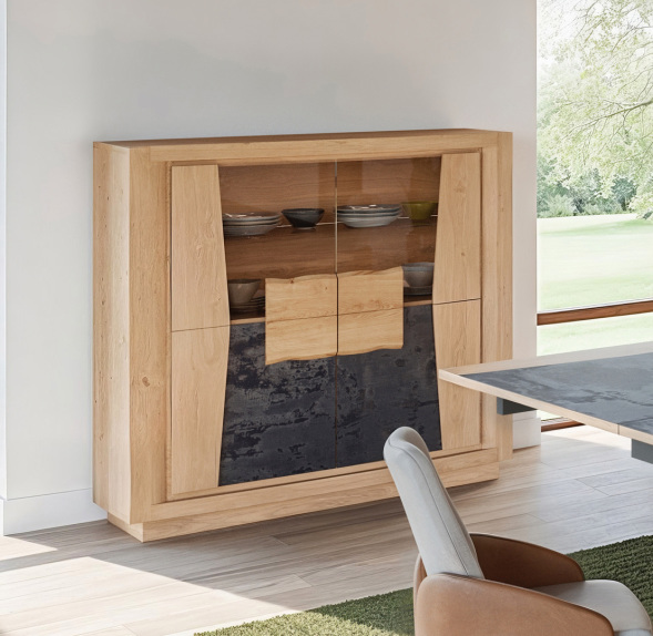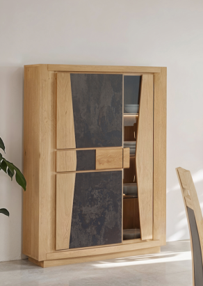 Vitrine en chêne et céramique, 4 portes, en 140x49xh140