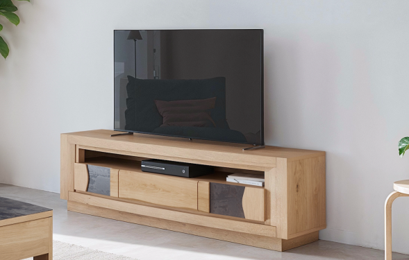 Meuble TV en chêne et céramique, 2 portes, 1 tiroir, en :