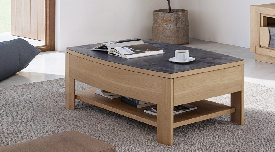 Table basse en chêne et céramique en 115x65xh40