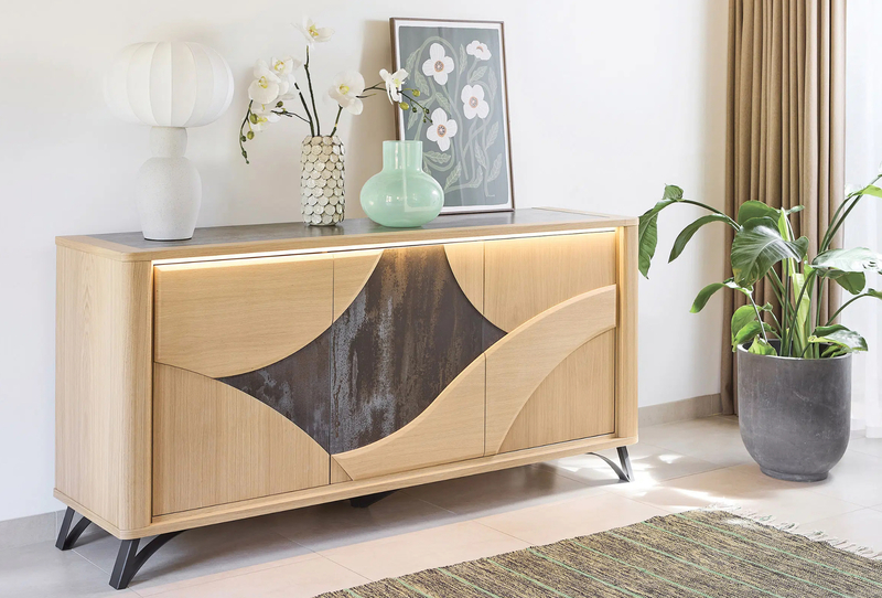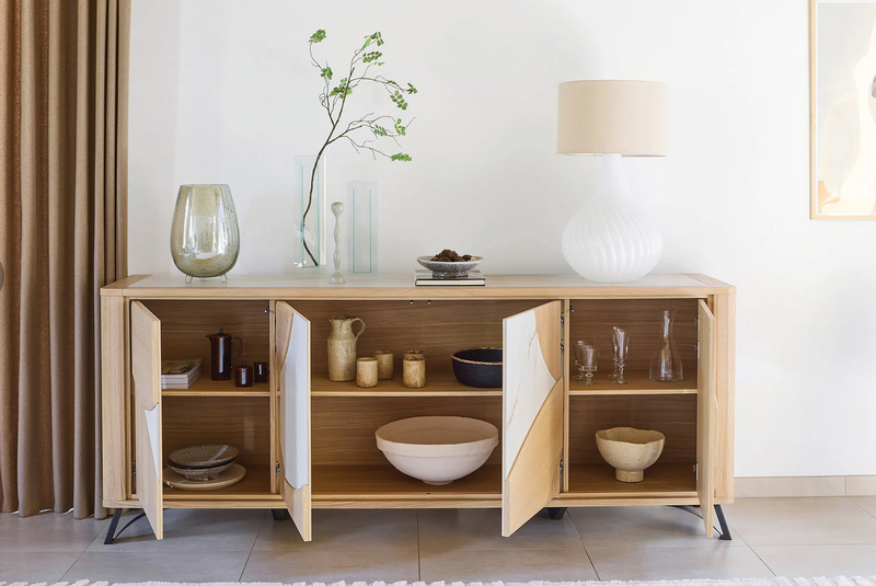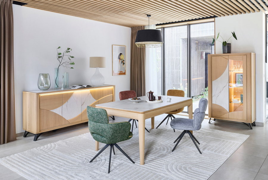 Le mariage du bois et de la céramique pour un intérieur tout en caractère.