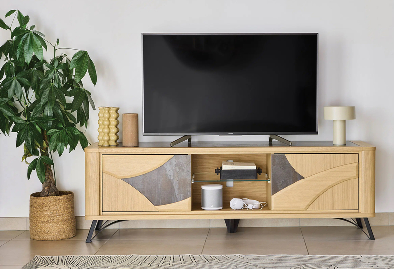 Meuble TV 2 portes, 1 niche, en 175x45xh57.5