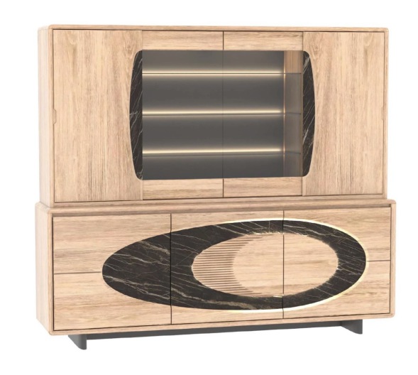Vitrine 2 portes en chêne et céramique en 100x42xh170