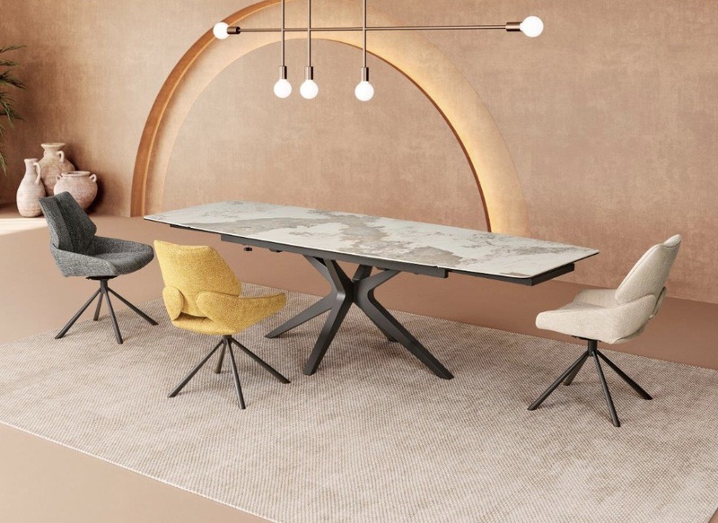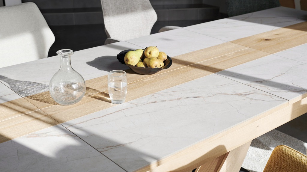 Table minérale XXL en 220x110 + 1 allonge de 80 + 2 de 45