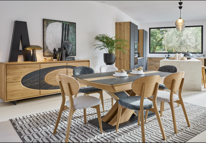 En céramique avec chemin de table en chêne massif
