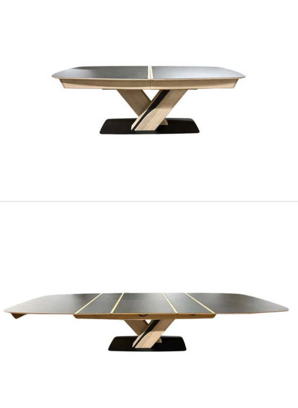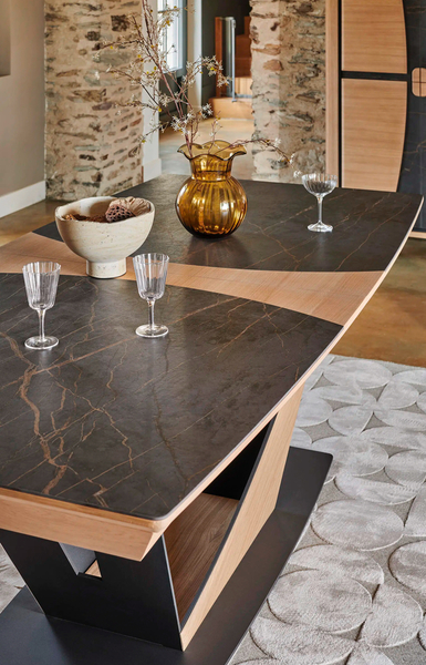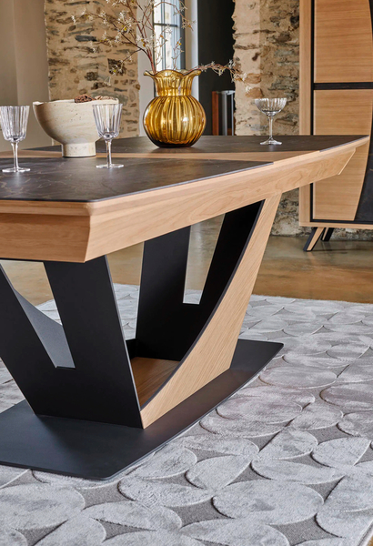 Table Corto En 220x110 en céramique avec bout de table en chêne